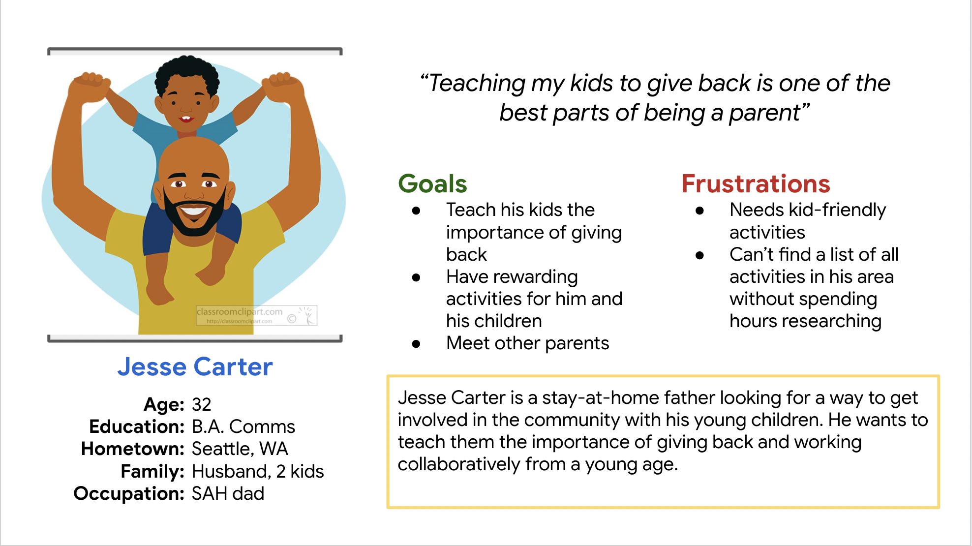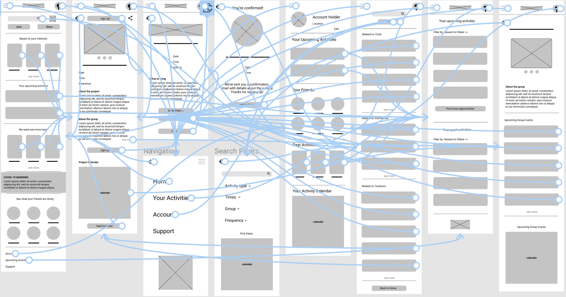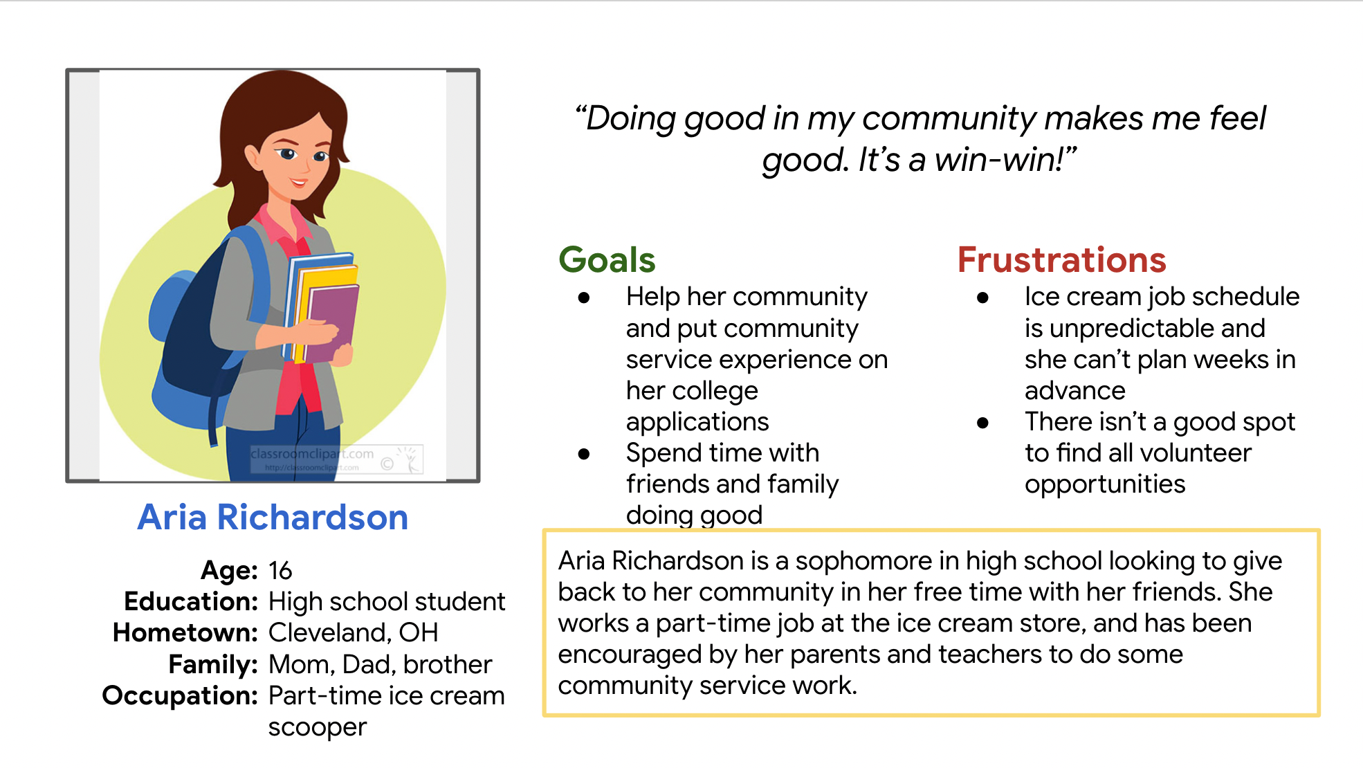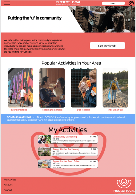 We conducted foundational research and design research. In the foundational research we found that users had a need to find all community service projects in one place. They wanted an app or website to be engaging and span across a variety of projects.